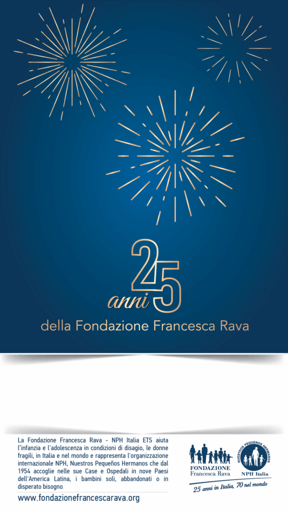 L’e-card rappresenta i 25 anni della Fondazione Francesca Rava in aiuto a minori in difficoltà in Italia, in Haiti e nel mondo